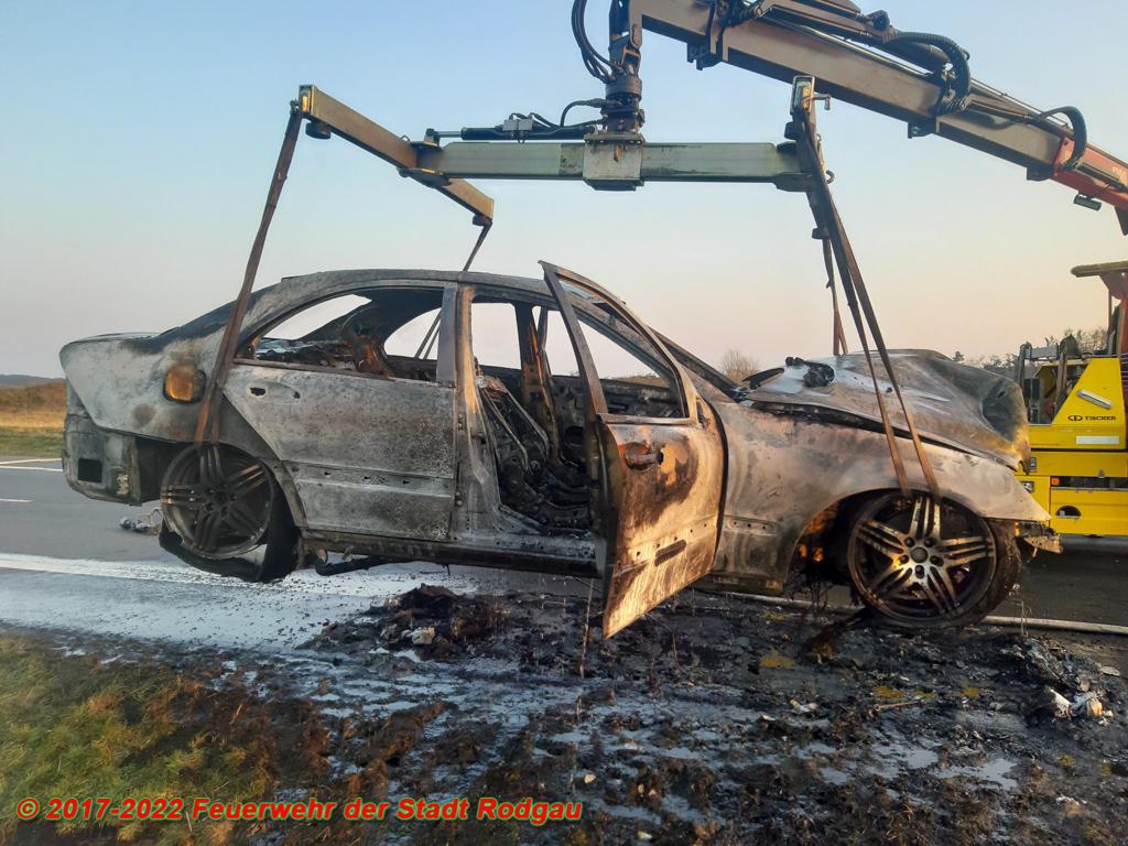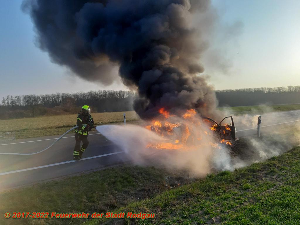 Auf der Kreisquerverbindung K174 in Fahrtrichtung Dietzenbach wurde der Feuerwehr ein beginnender Fahrzeugbrand gemeldet. Beim Eintreffen der Einsatzkräfte stand der PKW bereits in Vollbrand. Die Feuerwehr löschte den Brand und sicherte die Einsatzstelle bis zum Eintreffen des Abschleppunternehmens ab.