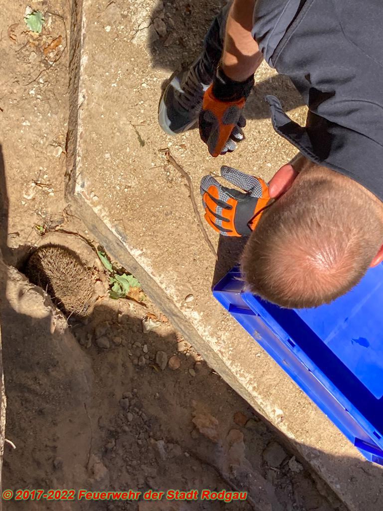 Ein Igel war in eine Baugrube gestürzt. Die Feuerwehr rettete das Tier aus seiner Zwangslage und transportierte den Igel anschließend in eine Auffangstation.